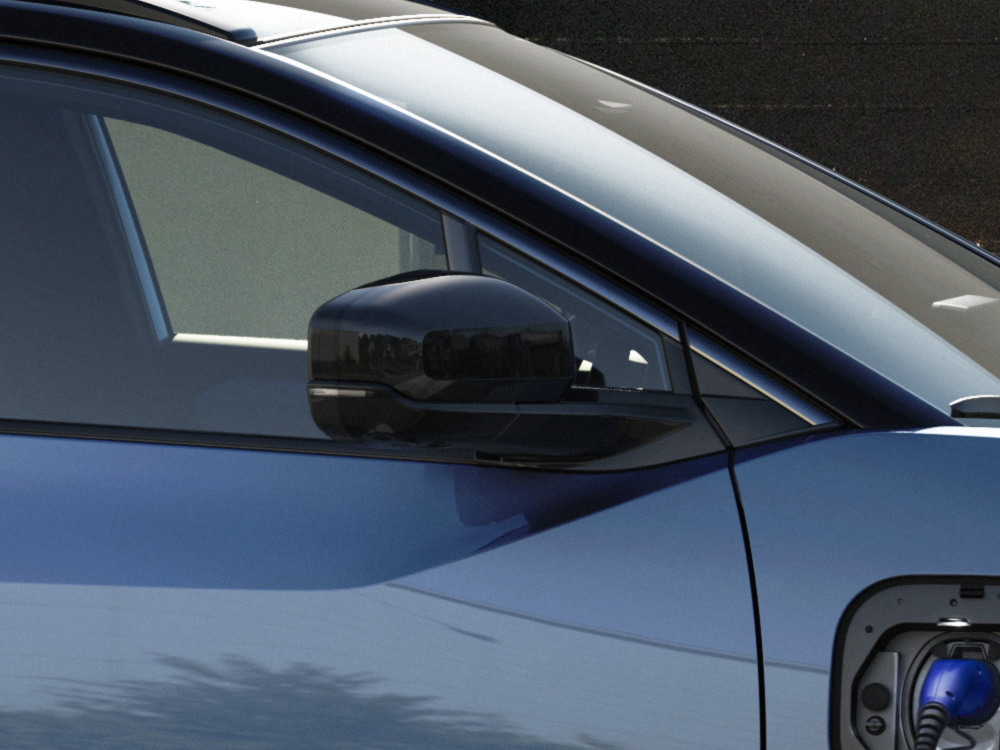 Close-up shot of 2026 Solterra heated, power adjustable side mirror.