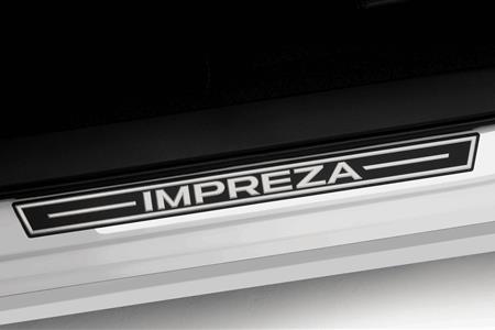 Handsome, metal-etched plates dress up your Subaru's front sill plates. Set of 2.