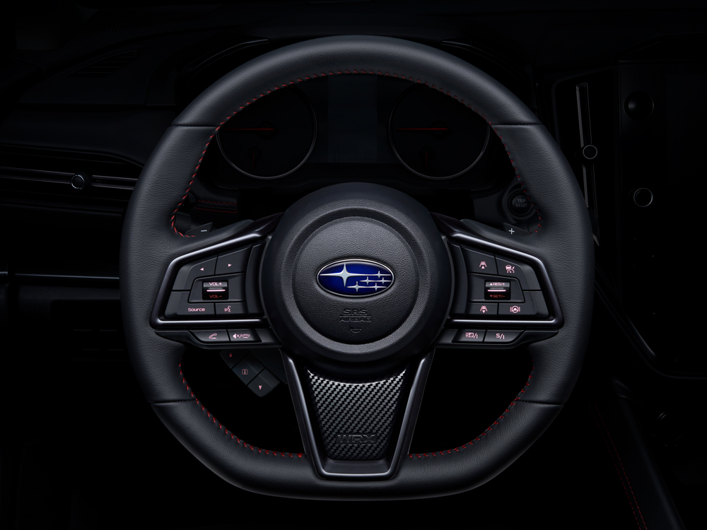 La planche de bord s’articule autour de deux grands cadrans faciles à lire — le tachymètre et l’indicateur de vitesse — alors que l’information secondaire est placée sur les côtés. L’afficheur multi-information couleur de 4,2 po situé entre les cadrans regroupe divers pictogrammes d’alerte et un témoin ECO avec des bandes colorées illustrant le rendement énergétique. Les modèles WRX GT et tS présentent un dynamique groupe d’instruments numériques de 12,3 pouces à la fine pointe de la technologie.